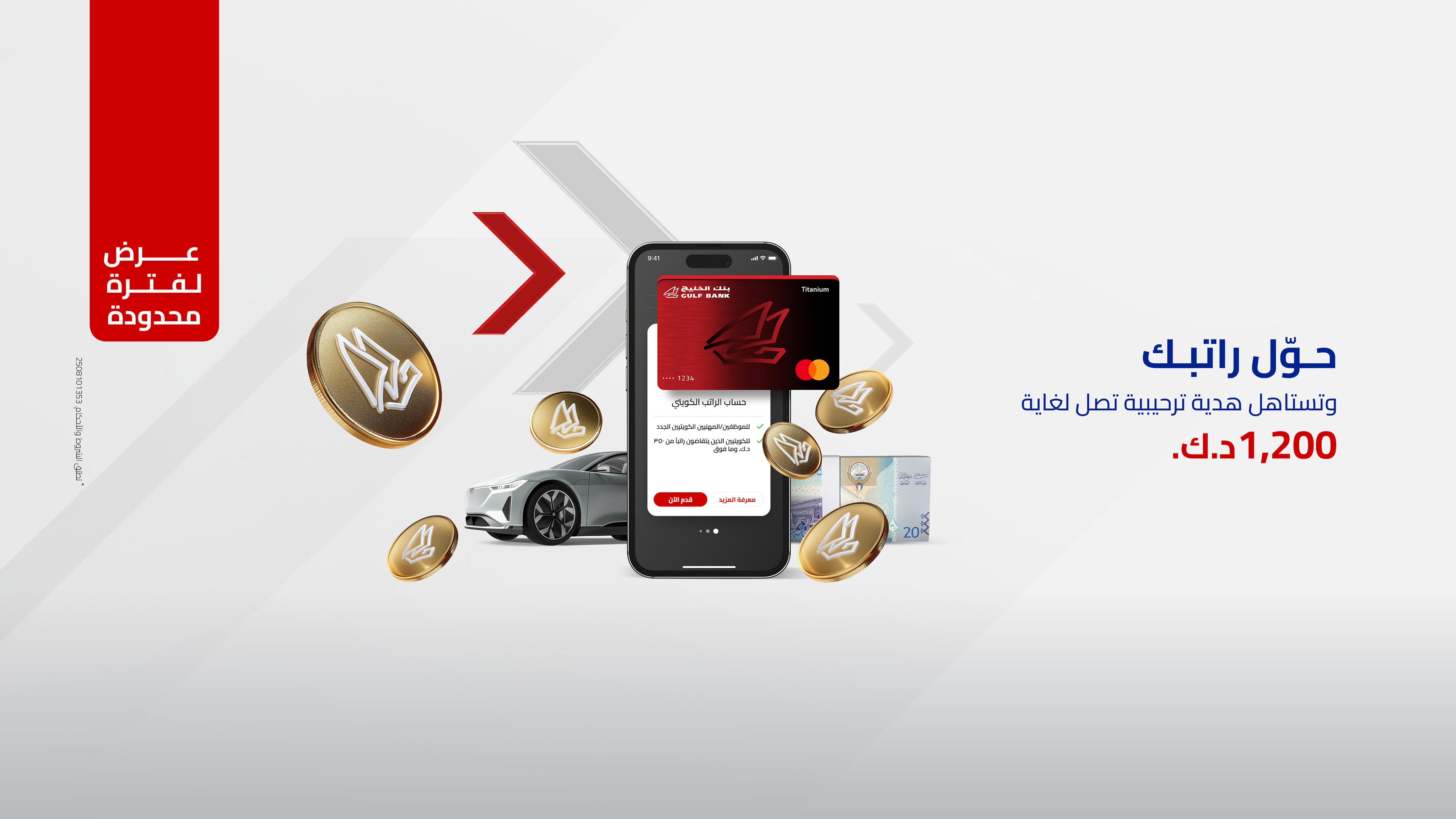 تشكل بداية الحياة المهنية محطة أساسية في مسيرة كل شاب كويتي، وبنك الخليج يقدّم لكم حساب الراتب المصمم خصيصاً لدعمكم في هذه المرحلة المهمة. عند تحويل راتبكم إلى بنك الخليج، ستحصلون على هدية ترحيبية تصل قيمتها إلى 1,200 د.ك.، لتكون بداية لمستقبلكم المالي. كما يوفر لكم الحساب مجموعة متنوعة من البطاقات الائتمانية التي تلبي مختلف أساليب الحياة وتمنحكم مميزات حصرية، إلى جانب الانضمام إلى برنامج نقاط الخليج، أحد أكبر برامج المكافآت وأكثرها تميزاً في الكويت، حيث تتحول عمليات الدفع اليومية إلى فرص قيمة للاستفادة من خيارات متعددة ومتنوعة.