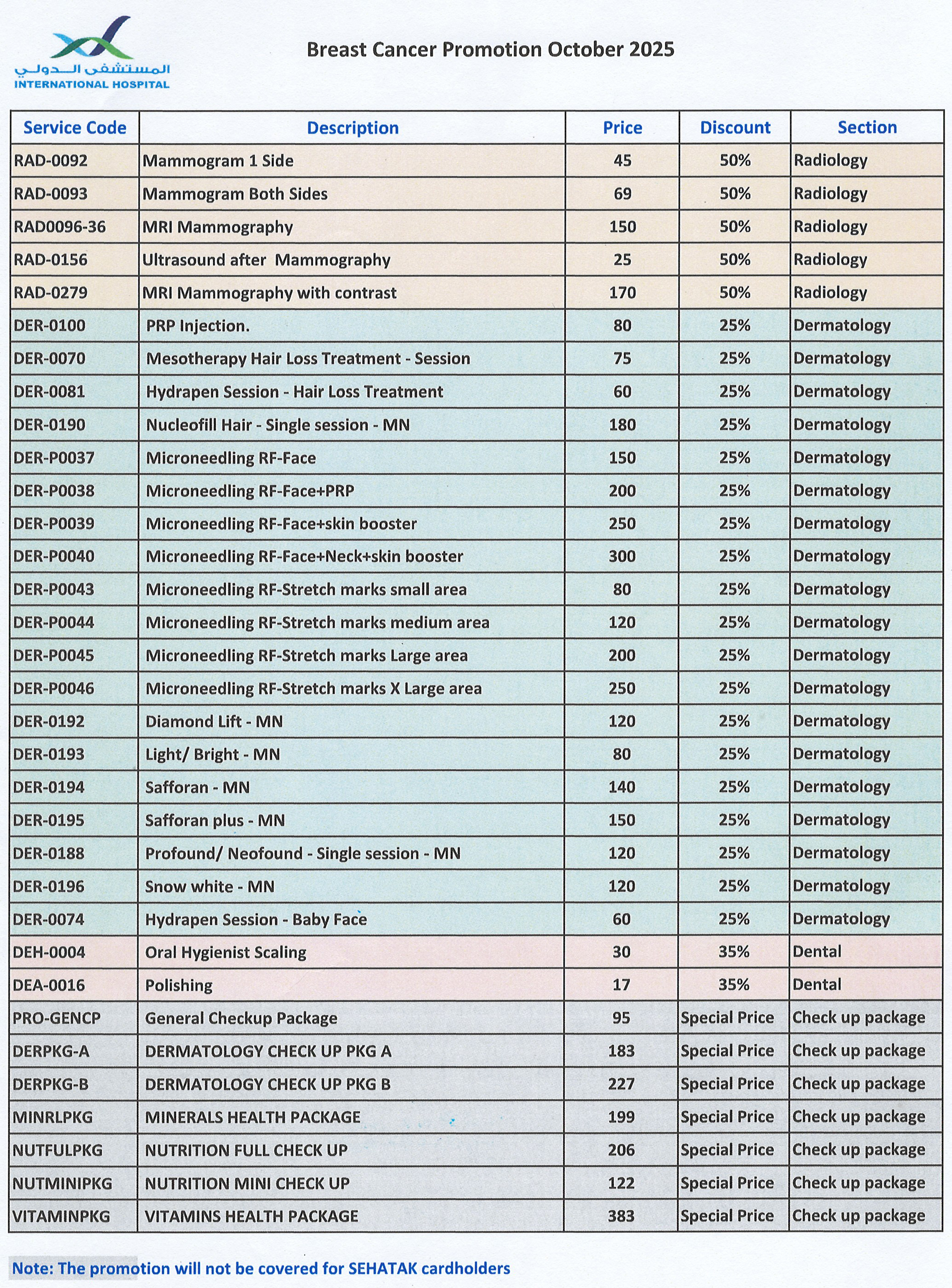 استمتعوا بخصومات حصرية مع بنك الخليج خلال شهر التوعية بسرطان الثدي لدى المراكز التالية: